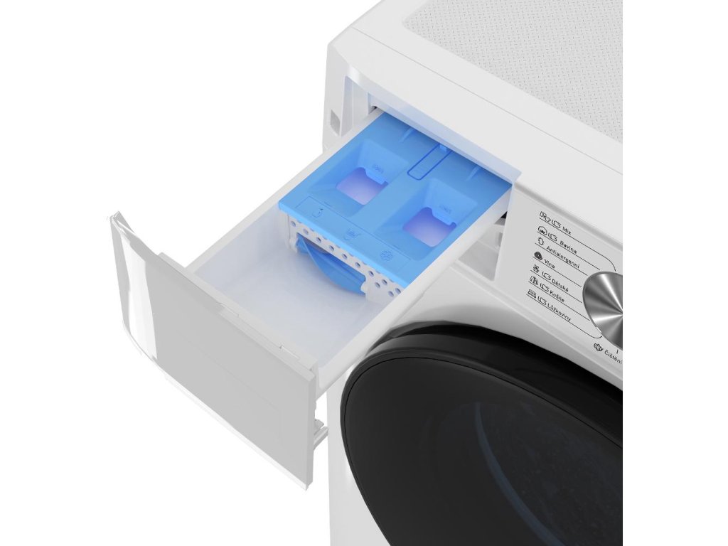 Pračka má i parní funkci, speciální programy pro péřové oděvy nebo rychlé programy pro osvěžení prádla za 15 minut, či vyprání celé náplně do jedné hodiny. Má také snížené vibrace díky 3 tlumičům umístěným tak, aby maximálně pohlcovaly otřesy, proto ji můžete bez obav schovat do koupelnové sestavy a nemusíte se bát prát ani v noci.